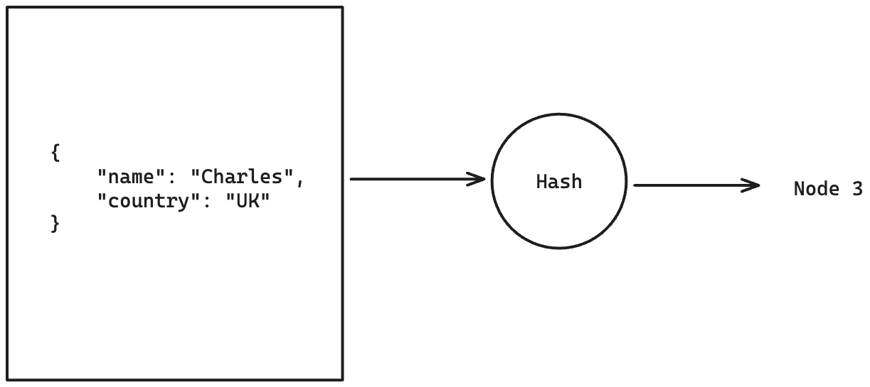 Given that we want to distribute data across the nodes, we could perform an equal split of the data and push it to different nodes. While this will solve our distribution problem, we will have a tough time finding a record during queries, as we would have no idea which partition it is present in.